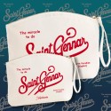 La pochette per ogni occasione da spiaggia o per passeggio, in canva con zip di sicurezza by Napolimania rappresenta l'accessorio perfetto per chi vuole portare con sé un pezzo di Napoli anche in riva al mare. Realizzata con materiali di alta qualità, questa pochette è disponibile nei colori classici del bianco e del nero.