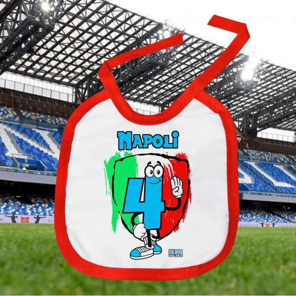 Realizzata e stampata a Napoli, la bavetta è impreziosita da una grafica esclusiva che omaggia il quarto tricolore conquistato dal Napoli. Un piccolo grande simbolo che, tra un biberon e una ninna nanna, racconta già una storia di tifo, appartenenza e vittoria.