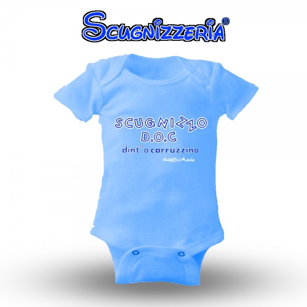 Body costina di cotone pettinato 100% azzurro con frase in napoletano "Scugnizzo". Un'idea regalo particolare e divertente per neonati e bambini maschietti da 1 a 36 mesi. Il pensiero ideale per festeggiare la nascita di un nuovo componente della famiglia, in maniera originale e tutta napoletana! Il prodotto, firmato Napolimania, è realizzato interamente a Napoli. Il materiale è cotone pettinato 100%, altamente resistente e facile da lavare. I gadget creati da Napolimania possono essere considerati dai turisti italiani e stranieri come souvenir, ma anche come un nuovo modo della città di Napoli di presentarsi al mondo. Prodotti 100% napoletani... Diffidate dalle imitazioni!