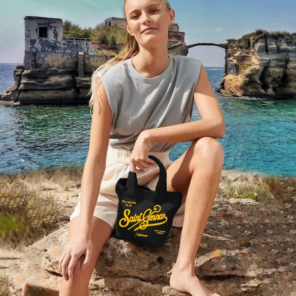 Che si tratti di una passeggiata sul lungomare o di una giornata di relax sulla spiaggia, le borse da spiaggia in tela con manici in corda e la scritta "Saint Gennar" sono l’accessorio ideale per chi vuole portare sempre con sé un pezzo di Napoli. Disponibili in bianco e blu, queste borse sono un must-have per l'estate, unendo praticità, tradizione e un inconfondibile tocco partenopeo.