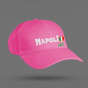 Cappello in twill in colore rosa "Napoli vintage", ricamato e regolabile, cotone 100%. Il prodotto è realizzato interamente a Napoli.