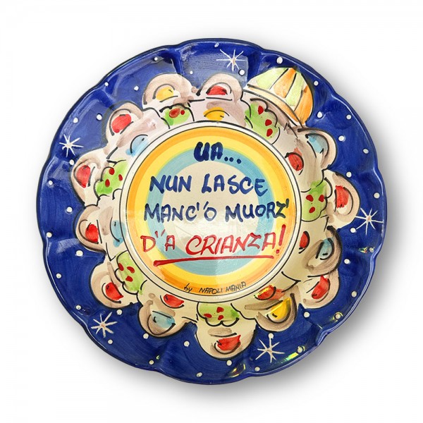 Piatto fondo in ceramica vietrese di alta qualità, con scritta in napoletano dipinta a mano, è resistente a ogni tipo di lavaggio e utilizzo! Una divertente idea regalo per chi ama Napoli! Il piatto crianza si può utilizzare in cucina, per diversi utilizzi! Il prodotto, firmato Napolimania, è realizzato interamente a Napoli, con un peso di circa 845 GR. e un diametro di 23 CM. I gadget creati da Napolimania possono essere considerati dai turisti italiani e stranieri come souvenir, ma anche come un nuovo modo della città di Napoli di presentarsi al mondo. Prodotti 100% napoletani... Diffidate dalle imitazioni!