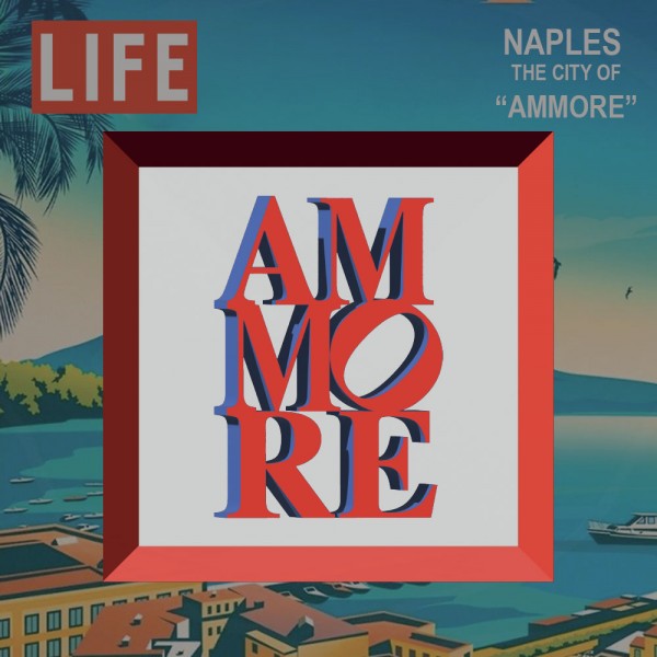 Reinterpretata in chiave partenopea, la scritta diventa AMMORE, in rosso fuoco su base blu elettrico, un contrasto che esplode di vitalità mediterranea. Una rivisitazione originale, fresca e pop, capace di trasformare un simbolo universale in un’icona tutta napoletana.
