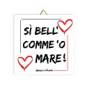 Mattonella in ceramica "Si bell comme o mare", con scritta stampata in napoletano. Il prodotto è realizzato interamente a Napoli; le dimensioni sono di CM 15X15 e un peso di circa GR 250.