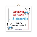 Mattonella in ceramica "Cane", con scritta stampata in napoletano. Il prodotto è realizzato interamente a Napoli; le dimensioni sono di CM 15X15 e un peso di circa GR 250.