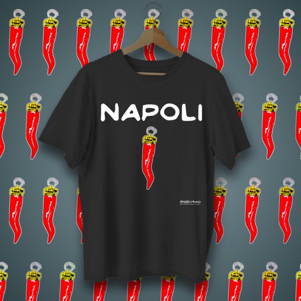 T-shirt "Napoli corno", cotone 100%, mezza manica. Il prodotto è realizzato interamente a Napoli.