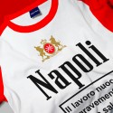 Questo dettaglio aggiunge un elemento distintivo e rende la maglietta immediatamente riconoscibile. L'intero design è un omaggio all'iconografia popolare, reinterpretata con un tocco di umorismo partenopeo.