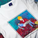Questa t-shirt è molto più di un semplice capo d'abbigliamento: è un vero e proprio tributo alla città di Napoli e ai suoi miti. San Gennaro, il santo patrono che da secoli veglia su Napoli, abbraccia con amore uno dei suoi "figli" più celebri, il Pibe de Oro, in un gesto che sembra voler dire: "Pure tu sei sotto la mia protezione". Una scena che fonde sacro e profano con quella leggerezza e ironia che solo i napoletani sanno esprimere.
