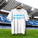 T-shirt "J'Adore ", la maglia dello scudetto il n° 4. Cotone 100%, mezza manica. Il prodotto è realizzato interamente a Napoli.