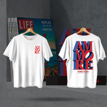 Questa t-shirt bianca presenta un design audace e distintivo, con la parola "AMMORE" stampata in grande al centro della schiena.