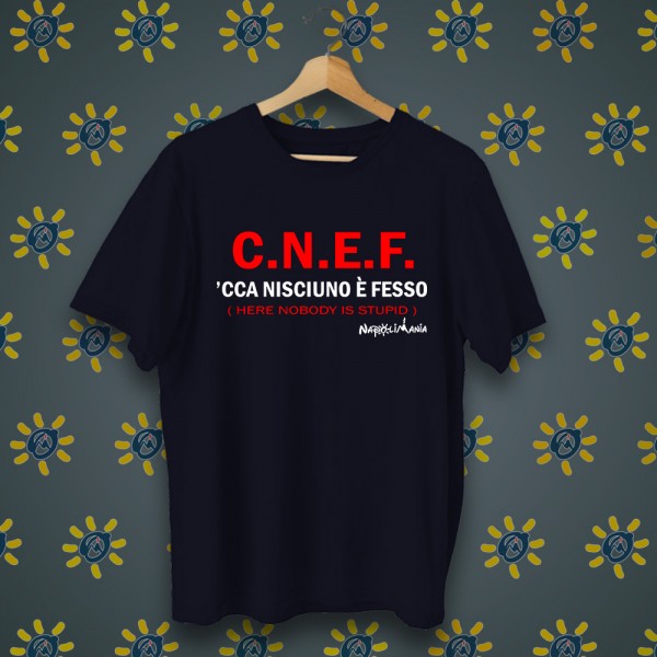 T-shirt "CNEF", cotone 100%, mezza manica, stampata con scritta in napoletano. Articolo da regalo divertente e originale, perfetto per un amico o un familiare che ama Napoli. Creato dalla fantasia di Napolimania, con un materiale assolutamente naturale e facile da lavare. Il prodotto è realizzato interamente a Napoli. I gadget firmati Napolimania possono essere considerati dai turisti italiani e stranieri come souvenir, ma anche come un nuovo modo della città di Napoli di presentarsi al mondo. Prodotti 100% napoletani... Diffidate dalle imitazioni!