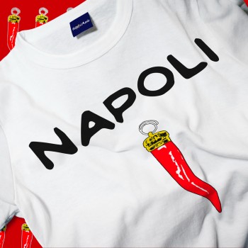 T-shirt "Napoli corno", cotone 100%, mezza manica, stampata con scritta in napoletano. Articolo da regalo divertente e originale, perfetto per un amico o un familiare che ama Napoli. Creato dalla fantasia di Napolimania, con un materiale assolutamente naturale e facile da lavare. Il prodotto è realizzato interamente a Napoli. I gadget firmati Napolimania possono essere considerati dai turisti italiani e stranieri come souvenir, ma anche come un nuovo modo della città di Napoli di presentarsi al mondo. Prodotti 100% napoletani... Diffidate dalle imitazioni!