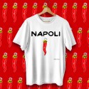 T-shirt "Napoli corno", BIANCO cotone 100%, mezza manica. Il prodotto è realizzato interamente a Napoli.
