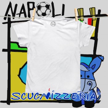T-shirt bambino "E sò tre", cotone 100%, mezza manica. Il prodotto è realizzato interamente a Napoli.
