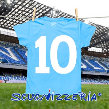 T-shirt bambino "Napoli Vintage"colore azzurro, con numero dieci sul retro. La maglia vintage dello scudetto. Cotone 100%, mezza manica. Il prodotto è realizzato interamente a Napoli.
