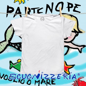 T-shirt bambino "Partenope", cotone 100%, mezza manica. Il prodotto è realizzato interamente a Napoli.