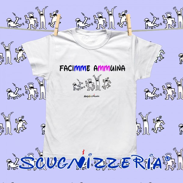 T-shirt bambino "Ammuina", cotone 100%, mezza manica. Il prodotto è realizzato interamente a Napoli.